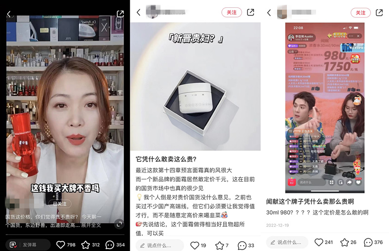在美妆领域,之前很长一段时间里,中国消费者都习惯了“国货就等于大牌平替”的印象,因此一旦国货的定价超过或接近国际大牌,就容易受到质疑。