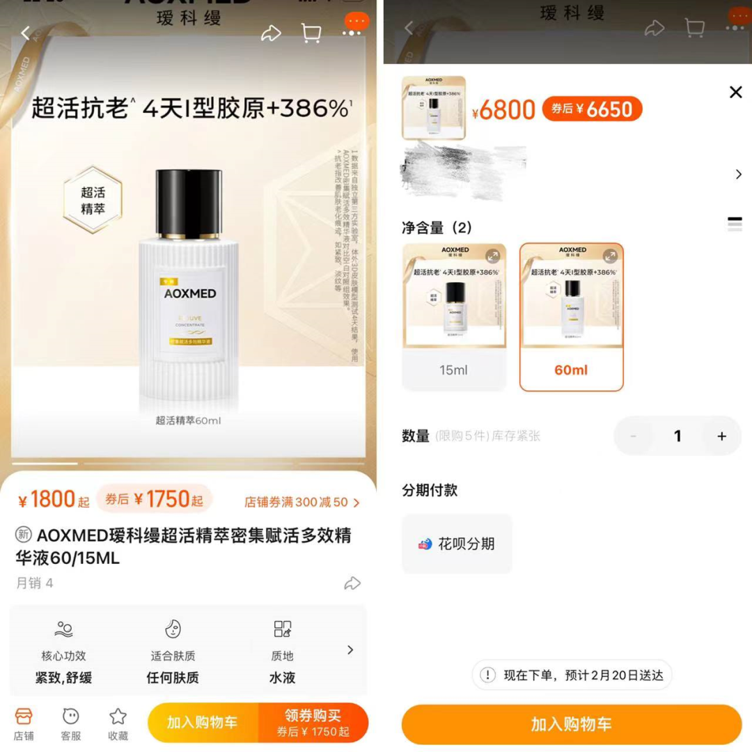 如薇诺娜母公司推出面向专业美容线的AOXMED瑷科缦,单品定价高达6000元,让消费者直呼“不是我乃凡人买得起的”。