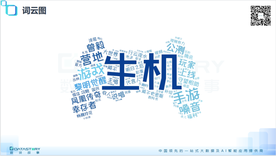 情感类型分布上,中立居多,负面极少,正面内容占比约14.8%,负面只有2.3%。在社媒平台词云分布上,“凤凰传奇”“曾毅”等品牌代言人为用户所关注,“阵营”“幸存者”“公测”等关键词突出。