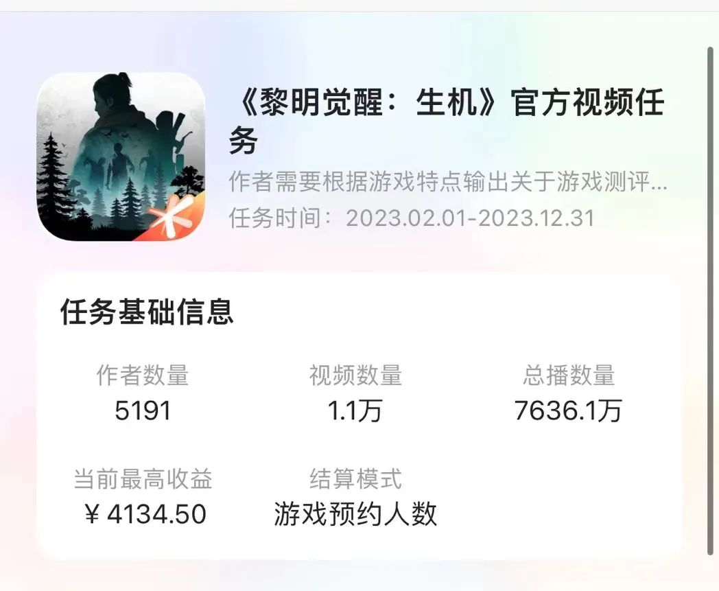 可能面临的问题:从视频号的角度来看,效果型达人营销,本来是腾讯的短板,视频号的小任务,本来有望借《黎明觉醒:生机》热度做出一个有代表性的案例(隔壁抖音游戏发行人计划就有某SLG作为典型案例),然而短期来看看来是没戏。从《黎明觉醒:生机》的角度来看,效果型达人营销看来只能依托快手了,达人质量且不说,快手来的玩家付费能力,emmmm。建议项目组后续破圈阶段,关注关注视频号吧。