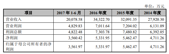 2014年至2017年1-6月,毛戈平实现营收分别为2.80亿元、3.21亿元、3.43亿元、2.01亿元;同期净利润则分别为0.47亿元、0.54亿元、0.53亿元、0.35亿元;综合毛利率分别为81.50%、79.70%、78.22%和78.88%。