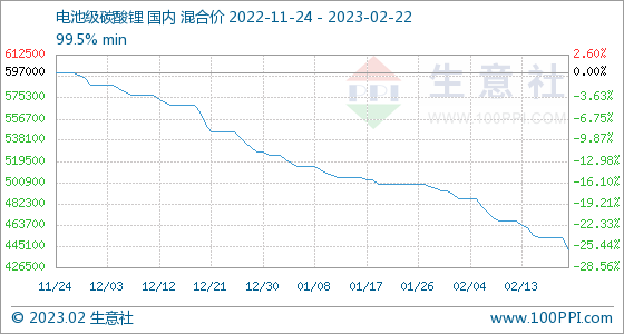 电池级碳酸锂近两年价格走势,图源生意社官网