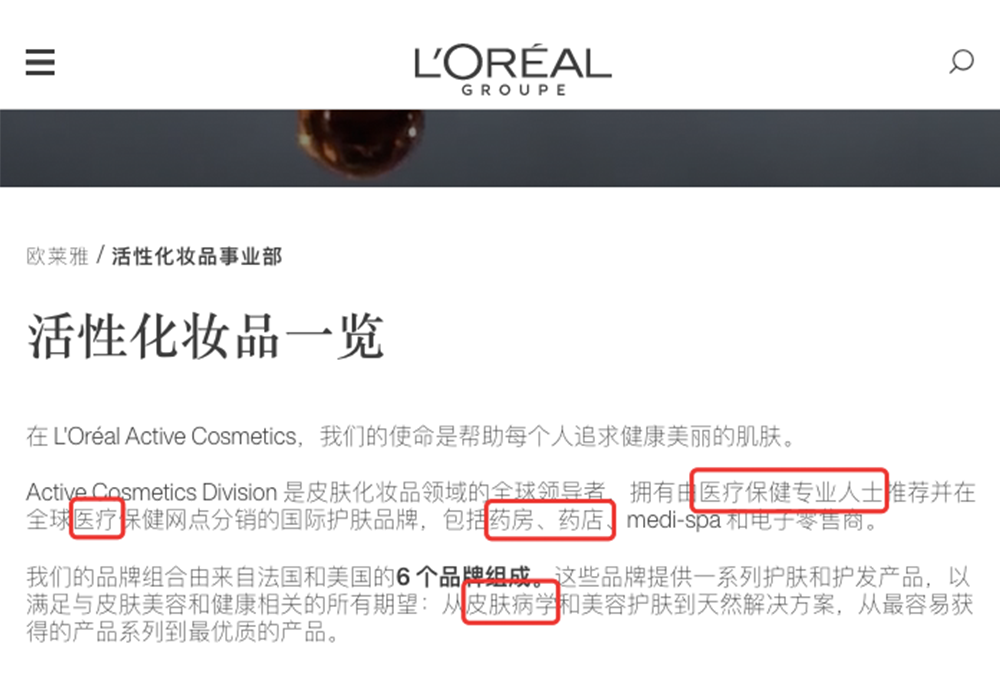 如其英文官网说的是欧莱雅活性健康化妆品部“拥有由医疗保健专业人士推荐并在全球医疗保健网点分销的国际护肤品牌,包括药房、药店、medi-spa和电子零售商。”