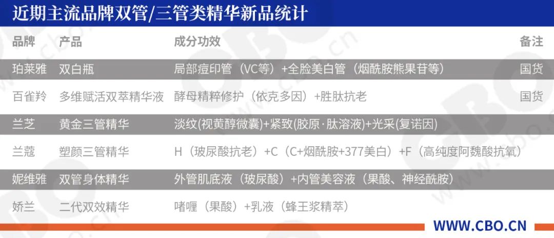 功效护肤时代浪潮之下,消费者对于产品成分的了解更加深入,国货品牌的自主研发意识不断上升,双管精华作为“秀研发”、“秀成分”的利器也广受国货品牌们的青睐。