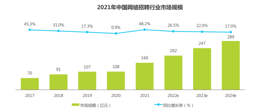 艾瑞咨询报告显示,2017年到2020年中国网络招聘市场增速逐渐放缓,到2020年增速仅有0.9%。到了2022年,脉脉自己也开始裁员。去年6月,有消息称裁员比例为30%,此后脉脉回应优化比例小于15%。