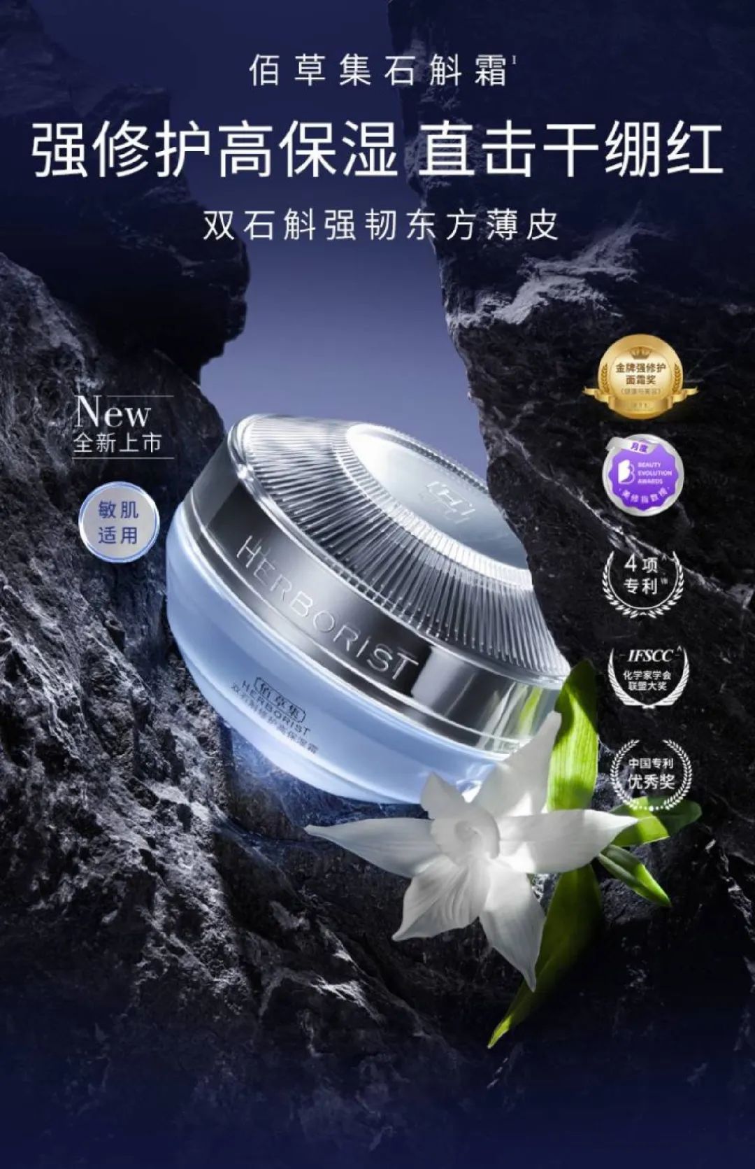 几十年来,专研中国女性肤质,推出太极肌源修护系列、御五行焕肌系列、新白七系列,并于2022年8月,推出佰草集双石斛保湿修护系列,为品牌注入新活力。产品主打高保湿强修护,添加铁皮石斛精粹、金钗石斛精粹外,还应用了能够舒缓止痒修护的专利成分——青蒿提取物。