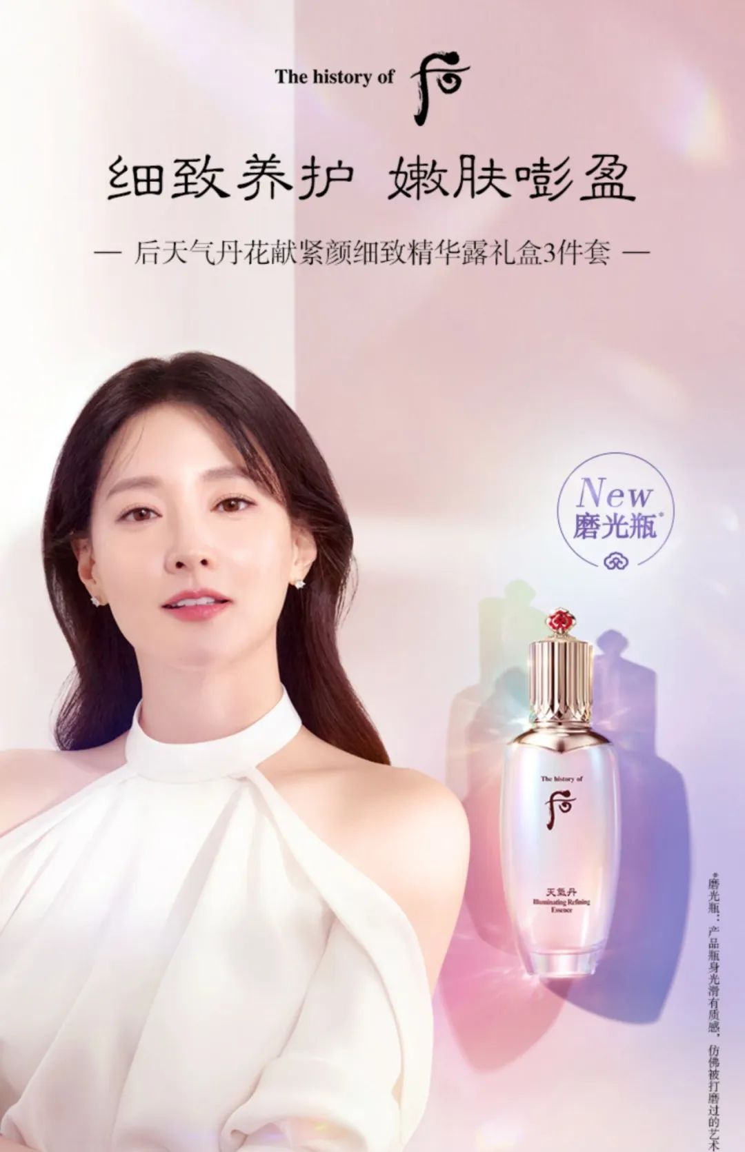 天气丹花献紧颜细致精华露作为Whoo后主推产品,其97%以上养护成分含量的精华水,蕴含天气丹系列核心成分:天气精萃(含有人参、极细当归、茯苓、南方菟丝子等珍贵东亚大陆草本)配以天气白瑛精萃(石榴、龙眼、丙酮酸钠(Pyrujuven)等),最后添加Refining complex精研成分给予肌肤细腻护理,焕现柔嫩透明感。