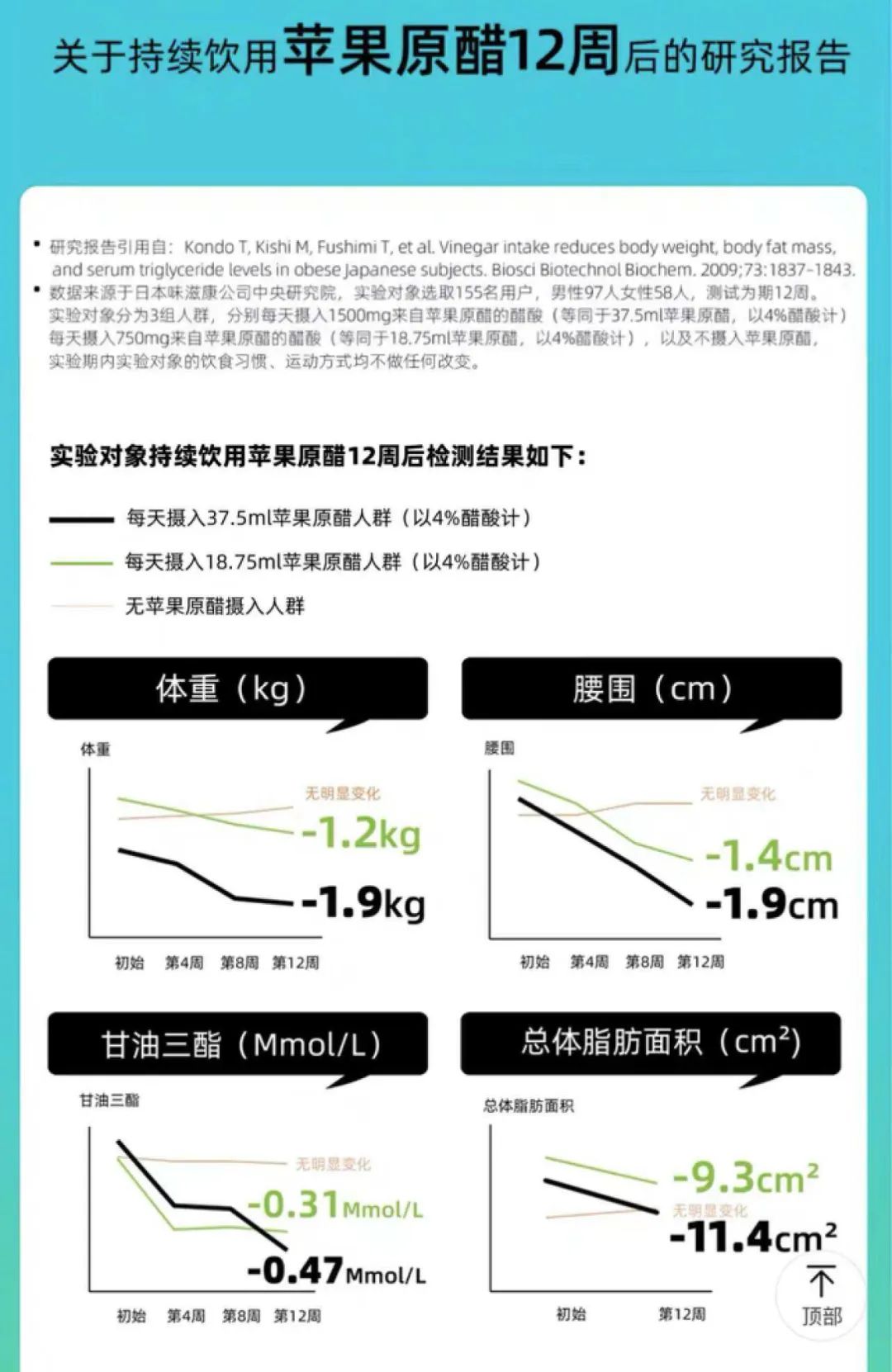 该报告显示,持续饮用苹果原醋12周后,体重、腰围和脂肪量都会显著下降。
