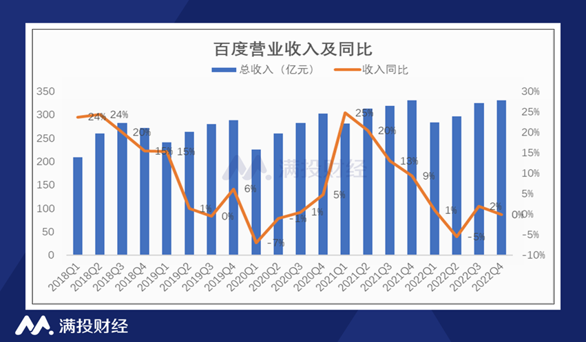 2月22日,百度(BIDU.US)发布2022年四季度以及年度财报,报告显示,百度四季度实现收入330.8亿元,与去年同期基本持平,环比增长2%;非美国会计准则下(Non-GAAP)录得净利润53.7亿元,同比大增32%,环比下降9%。