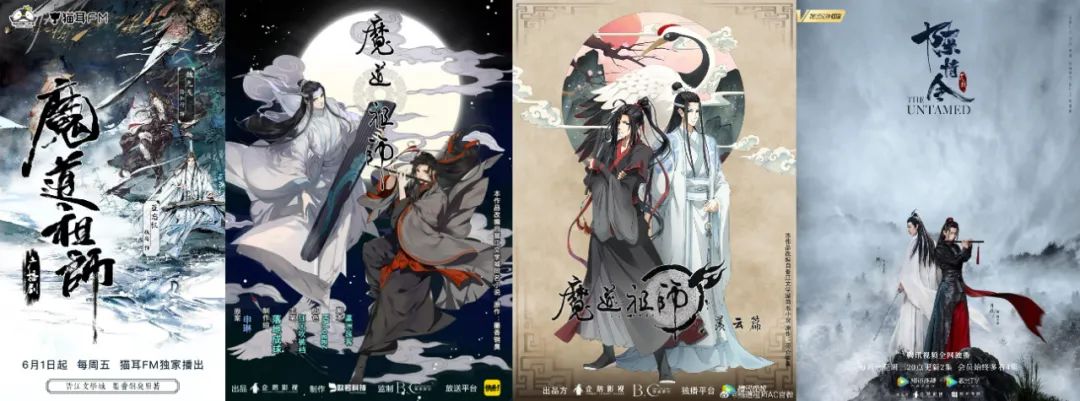 例如从2017年起,居晋江霸王票总榜前列的《魔道祖师》,衍生内容开始上线。尽管猫耳FM出品的广播剧需要付费,却是平台播放量最早破亿的作品;漫画、动画、真人剧衍生内容则都可见企鹅影视的身影,IP影响范围层层扩大,甚至登陆国外市场。该IP能够收获如此成绩,不仅仅依靠原作小说表现与核心粉丝基础,多媒介、多渠道的内容再现,促使不同领域积累的粉丝,最终都愿意为IP消费。