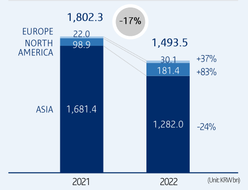 另一韩国美妆巨头爱茉莉太平洋集团同样面临营收和利润的双双下滑。财报显示,集团2022年销售额为238.05亿元,同比下滑15.6%,营业利润为14.28亿元,同比下滑达48.9%。
