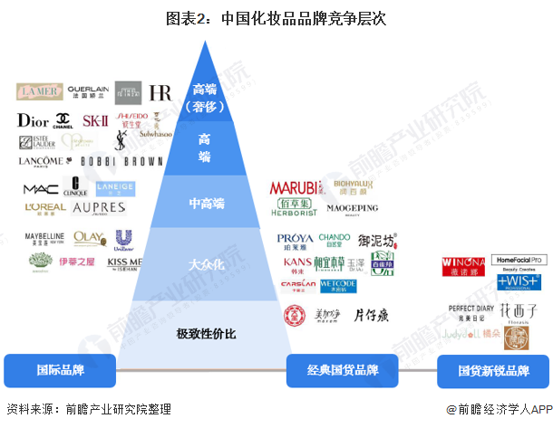 总的来看,目前国内的化妆品市场竞争梯队划分较为明显,高端和高奢市场几乎由国际大品牌垄断,而我国本土的化妆品品牌只在大众化市场中才占有一席之地。