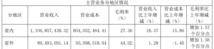 在安徽省内,“徽酒四杰”市占率约54%,而金种子酒市占率仅为2%。而在全国范围内,公司省外市场对整体营收贡献极低。2021年财报显示,省内营收约11.07亿元,省外营收约0.89亿元,约占总营收的7.39%。
