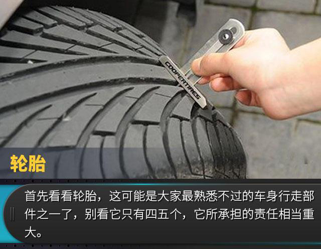 首先看看轮胎,这可能是大家最熟悉不过的车身行走部件之一了,别看它只有四五个,它所承担的责任相当重大,不仅要提供足够的抓地力,还要撑起一两顿重的车身和乘客。而这么重要的零件,当然少不了悉心呵护,轮胎的寿命一般是四年左右或者五万公里左右,如果您的轮胎已经到了上述条件其中一个的话,那还是尽快更换新胎较妥,如果您平时驾驶比较激烈或者是常走路段路况较恶劣的话,建议在上述指标之前更换。另外,对备胎也要多关怀一下,建议每次保养或洗车时检查一下胎压,毕竟是救急使用,万一紧急时刻备胎都用不了,那就崴泥了。