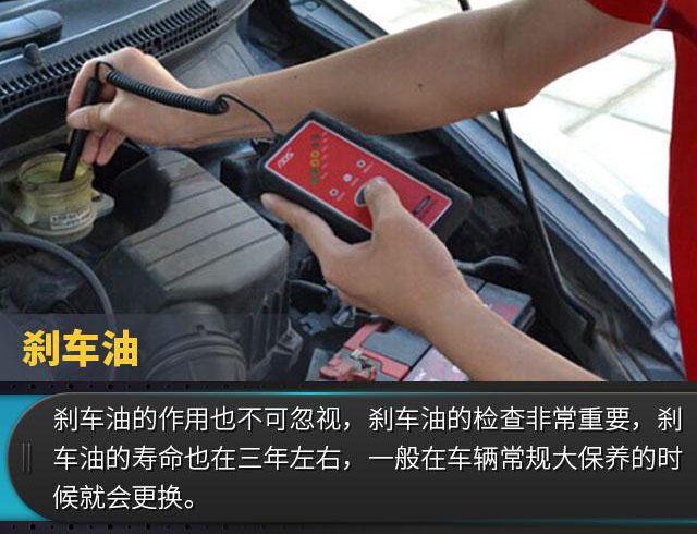 在整个制动系统中,刹车油的作用也不可忽视,刹车油的检查非常重要,刹车油的寿命也在三年左右,一般在车辆常规大保养的时候就会更换。刹车油从刹车泵里挤出以后会通过ESP/ABS阀,然后分流到前后左右的四个刹车分泵内,挤压各分泵里的活塞,活塞再挤压刹车皮,从而提供制动力。所以,刹车油的油压也十分关键。车辆出厂后的刹车油即可提供足够制动压力,如果日后没有在SSSS店更换的话,一定要注意刹车油购买时的厂家是否为车辆原厂提供品牌,如果有渠道,那加注其它品牌和更高耐高温标号的刹车油也可。