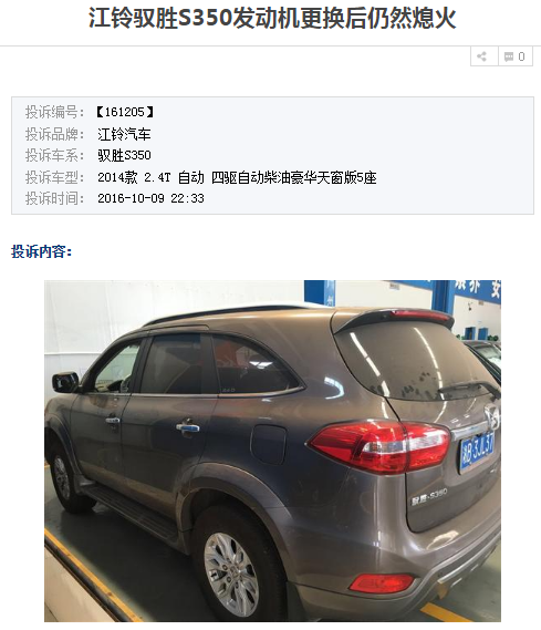 下面请看一个有关驭胜S350发动机问题投诉的具体案例: