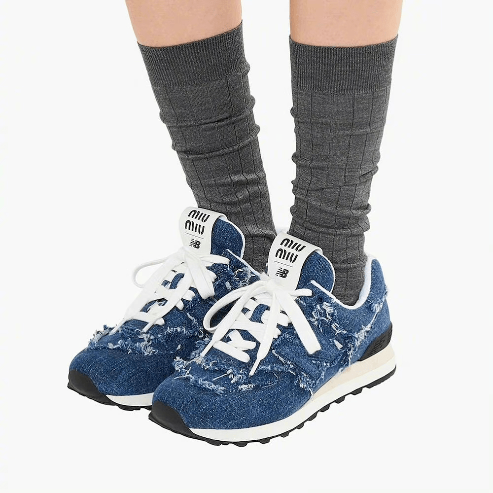 全新Miu Miu x New Balance采用全新面料、剪裁和缝制工艺重新诠释了New Balance 574系列,联名新品现已登陆 Miu Miu官网销售,丹宁款式为7950元,白色皮革版本为8650元。(信息来源:NOWRE)