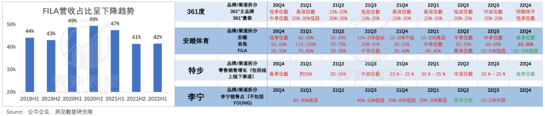 这在营收上已有体现,2021H2-2022H1,FILA的收入增速大幅下滑。