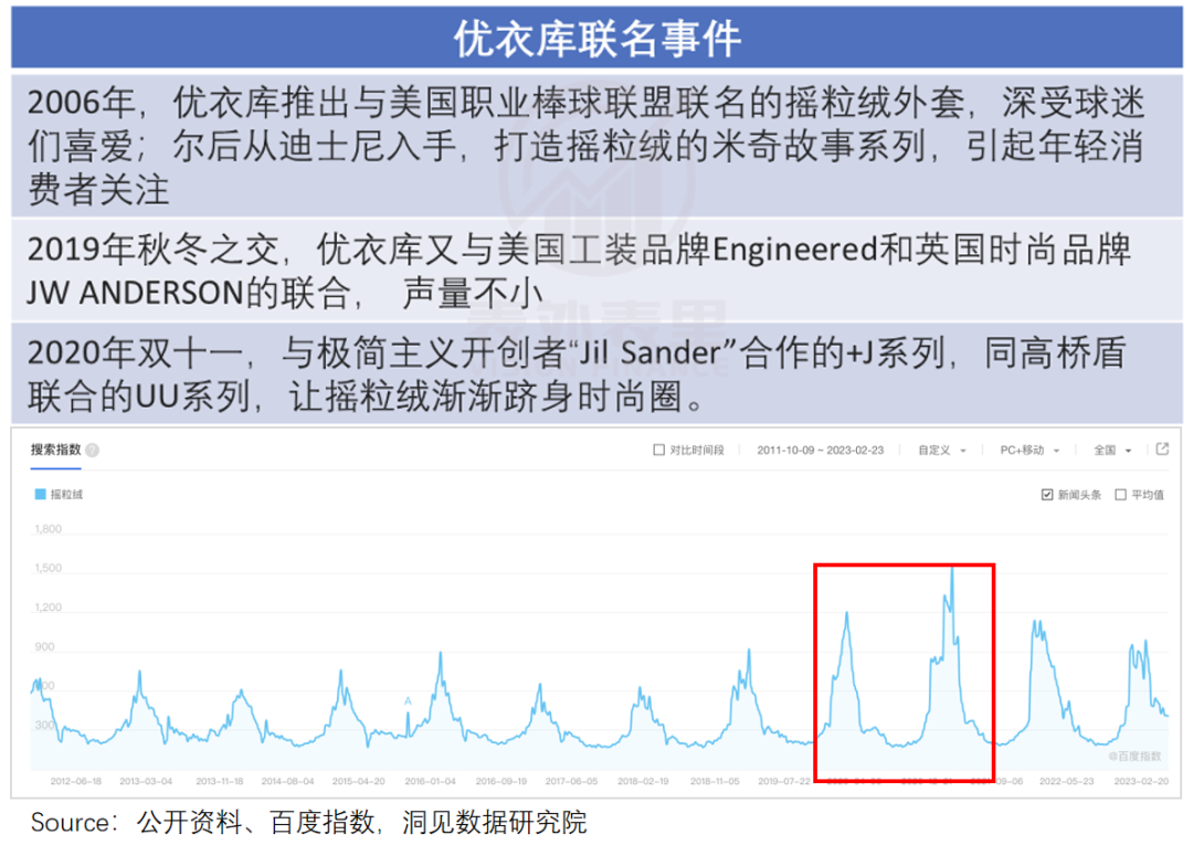 可以看到,每到冬季有新的联名产品推出时,摇粒绒的热度总会有一波上涨。而2019、2020年因为同时推出了几个大联名,更是出现了热度高峰。