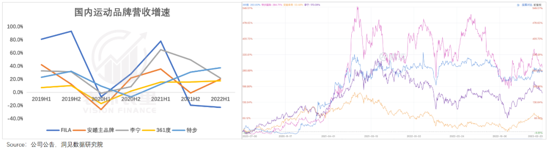 但对比会发现,同样的环境下,特步的营收增速却是上涨的;同时在股价表现上,特步2021年以来涨幅也很大。