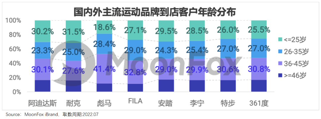 而服装品类上,《2022运动品牌全渠道发展数据报告》显示,FILA到店客户中,36-45岁用户最多,占比达32.8%。