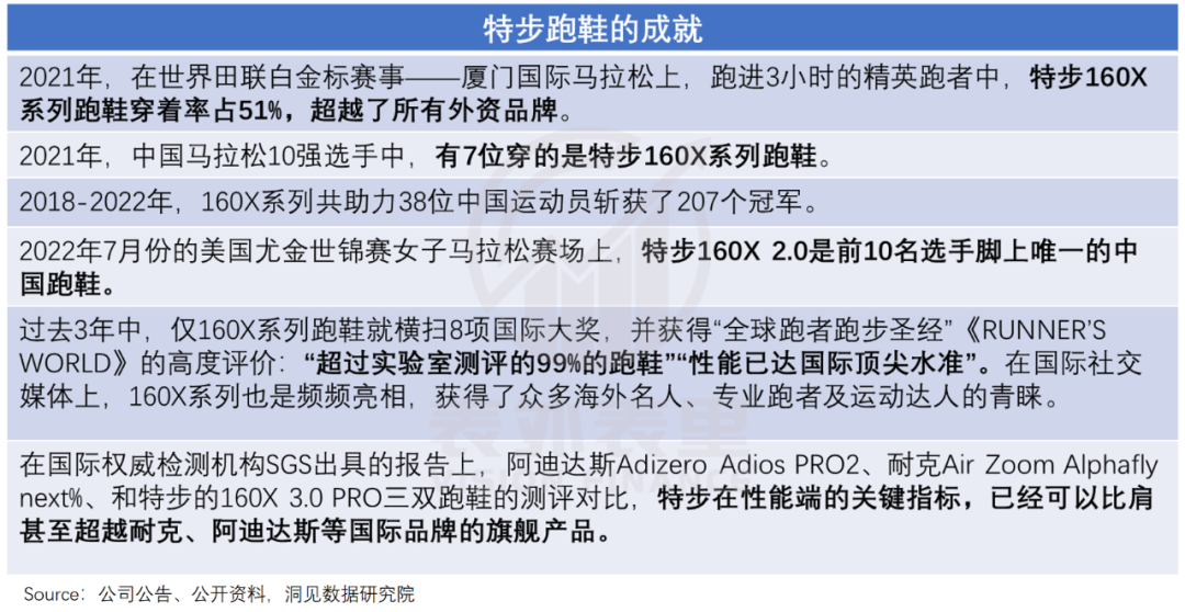 可以看到,曾以“全球时尚运动第一品牌”为目标的特步,在专业跑鞋领域,存在感越来越强。而其2021Q4财报提到:对产品未来规划的方向,重点还是会聚焦在跑步中。