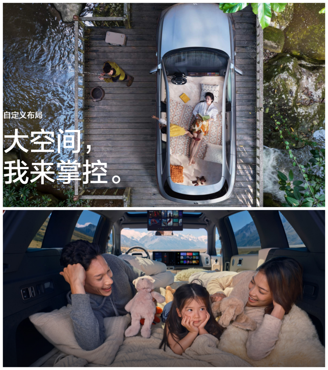 而随后,新势力车企将这一概念不断丰富,理想、小鹏等多家车企,将露营的概念本土化,打造出更多服务于家庭场景的功能,诸如理想L9上的冰箱、多屏幕、按摩座椅等,以及小鹏G9的一键成床等功能。同时,多家车企借由星巴克第三空间的理念,将这一理念不断放大,形成卖点。特别是在理想旗下的多款车成功破圈之后,第三空间的理念更是成为车企的设计产品的一种趋势。