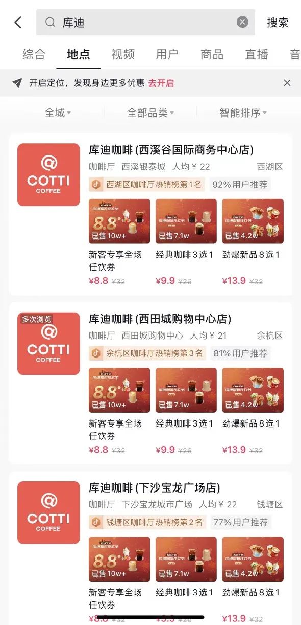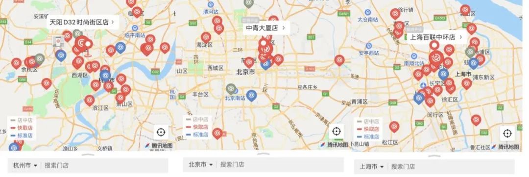 杭州/北京/上海库迪咖啡门店布局