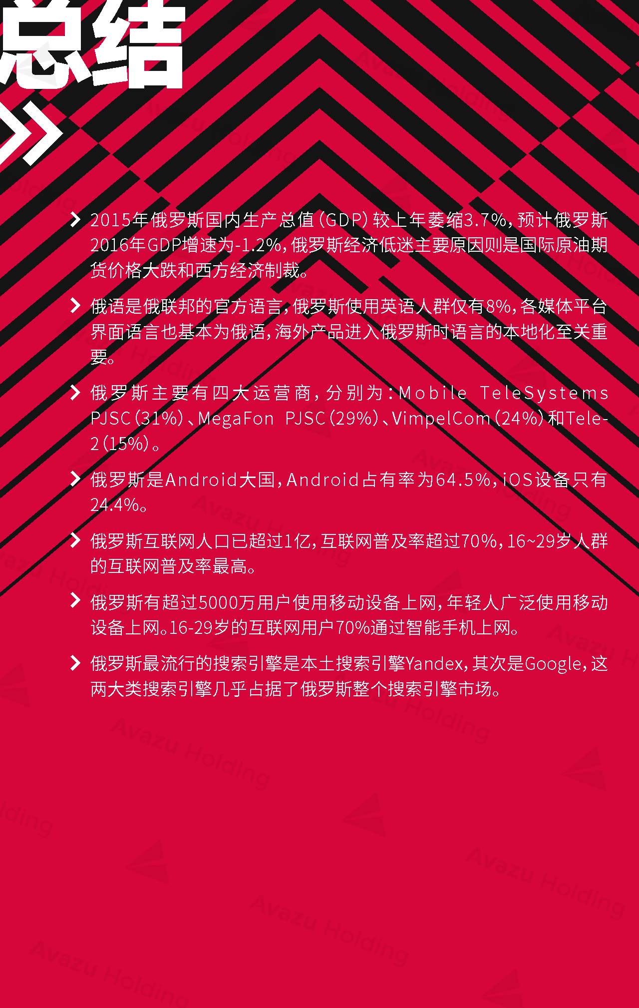 近期,技术驱动的跨国互联网控股集团Avazu Holding从行业环境、社交媒体、App市场、互联网广告、在线游戏(包括移动游戏)电商以及在线支付,七大方面,对俄罗斯的互联网产业进行了相关介绍和分析。