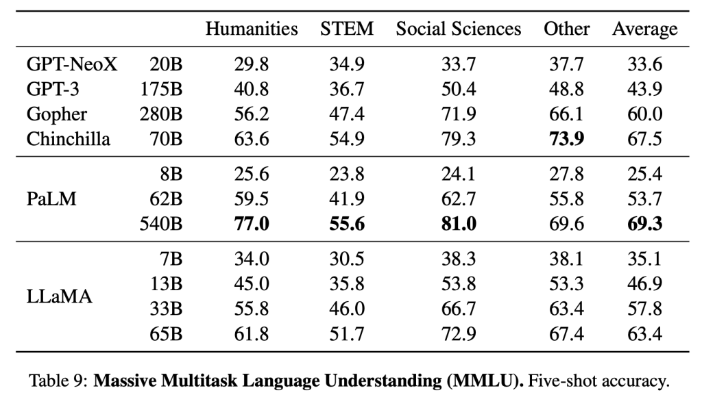 经比较,研究人员发现,拥有650亿参数的LLaMA在大多数领域平均落后于拥有700亿参数的Chinchilla和拥有5400亿参数的PaLM几个百分点。