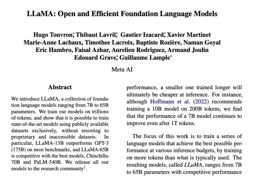 此前在最新季度财报电话会议中,Meta CEO扎克伯格提到“生成式AI”的次数比“元宇宙”还要多。如今,Meta带来了一个利好研究学者的AI重磅成果——仅用约1/10的参数规模,实现了匹敌OpenAI GPT-3、DeepMind Chinchilla、谷歌PaLM等主流大模型的性能表现。