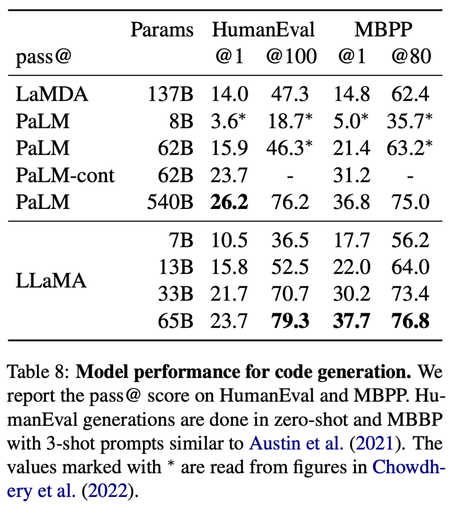 对于拥有相似参数的模型,LLaMA优于其他通用模型。