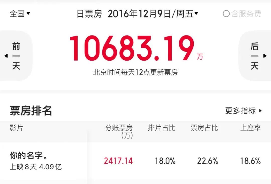和好莱坞引进片不一样,日影在内地向来是小众的代名词,只有极少数项目能够打破核心受众圈层进入大众市场。因此可以看到,自从2016年贺岁档上映的新海诚动画电影《你的名字。》以5.75亿元刷新内地票房新高以来,六年多过去了,还是没有影片能打破这一纪录。