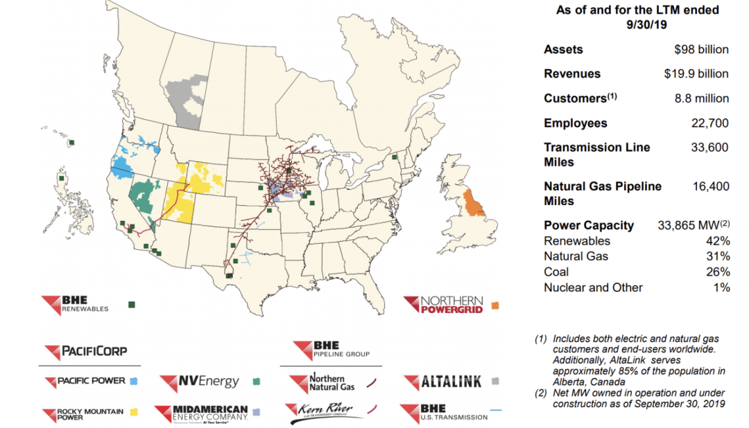 最后一个引擎,是伯克希尔哈撒韦能源公司(BHE),巴菲特将其形容为,这是“我们最后的巨人”。
