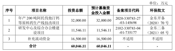 然而从募资用途来看,海森药业的6亿募资额中仅1.15亿元用于研发方向,其中还包括办公楼的建设项目。募资重点主要是用于扩产及补充流动资金。