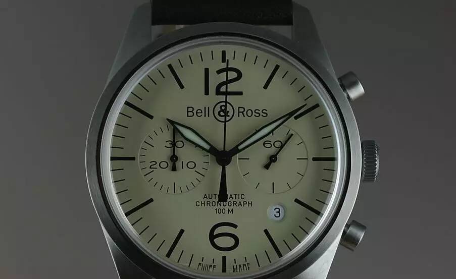 柏莱士的飞行表在国外也是受众的,且还带着复古复刻的样板,BELL &ROSS的年岁还轻,原本谈不上什么复刻(更别提是两次世界大战这么古早以前的事了),不过他们家以当时的风格为底本做出来的复古款式,有时候比真的经历过那个时代的品牌做出来的复刻表还有味道。老实说讲到军用飞行表老邓个人还是偏好最基本的三针款,不过计时码表在飞行表当中仍然是一大正统,是以这款的推出仍然相当讨喜。