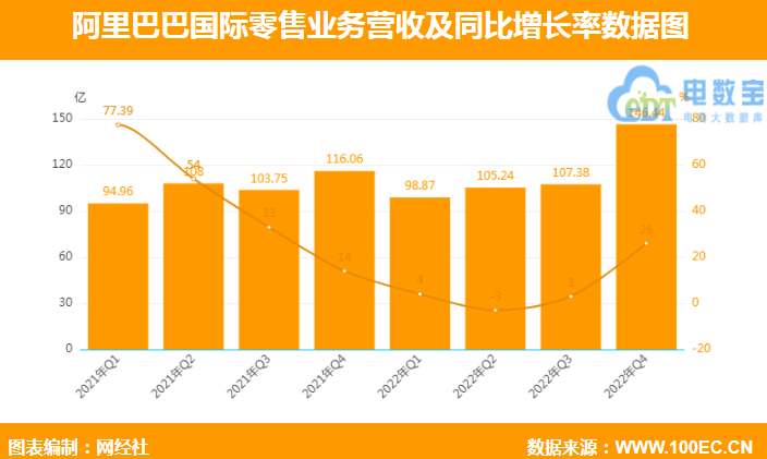 张周平说道,四季度阿里跨境电商板块海外零售业务(含Lazada、速卖通、Trendyol及Daraz)营收146.44亿元 同比增长26%。海外零售收入再次超百亿元,自二季度营收跌破百亿以来,该成绩也是2年多来第6个季度收入过百亿。增速上,四季度实现增速26%,自2022年开始,该业务板块的同比增长率就呈现了“断崖式”下降,本季度增速首次突破两位数增长。