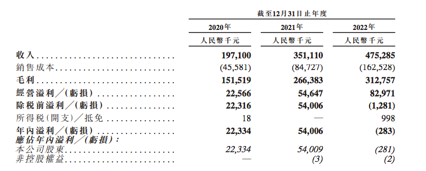 2020年-2022年,量化派的年内总收入分别为1.97亿元、3.51亿元和4.753亿元;同期,净利润分别为2233.4万元、5400.6万元、-28.3万元。