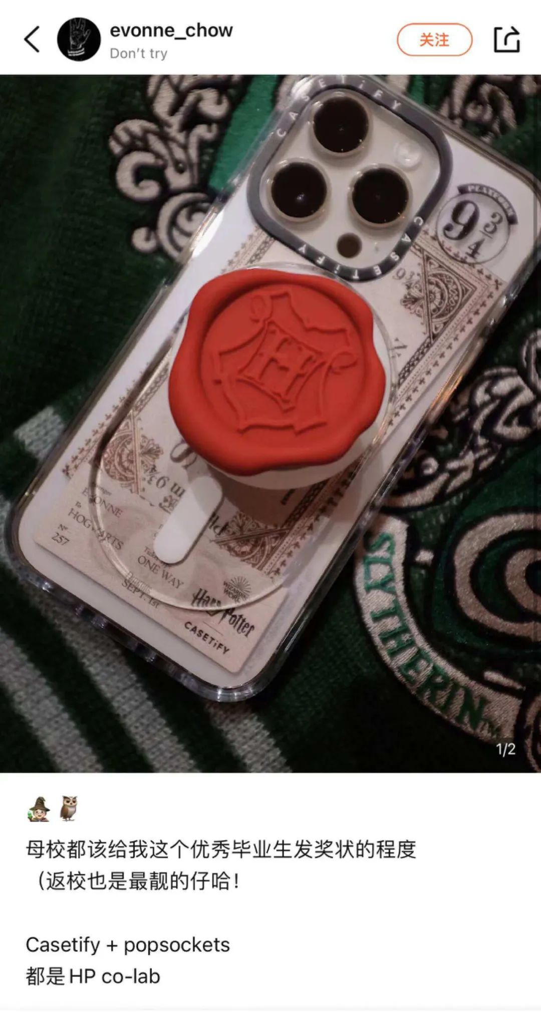 消费者在展示CASETiFY和Popsockets的哈利波特联名款,图源大众点评