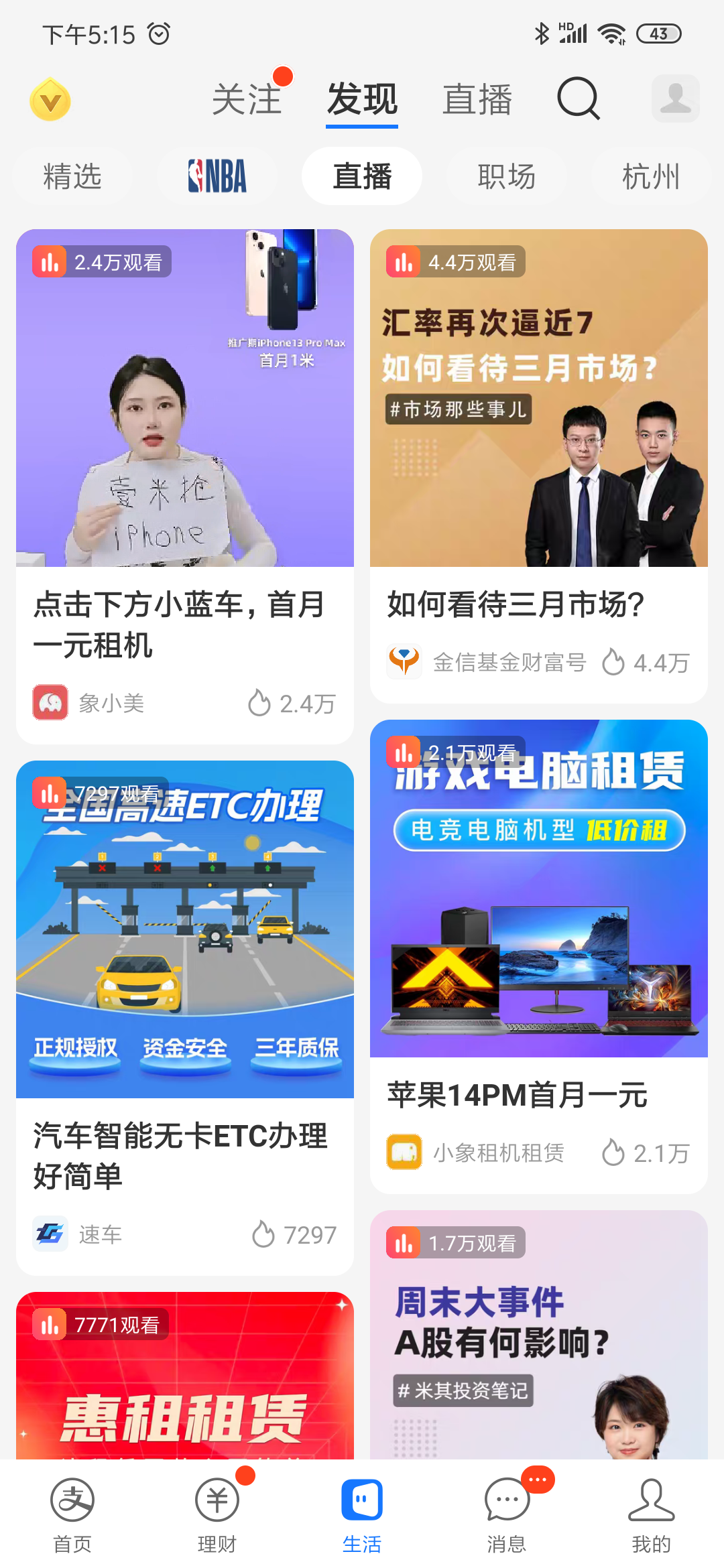 支付宝生活号直播频道