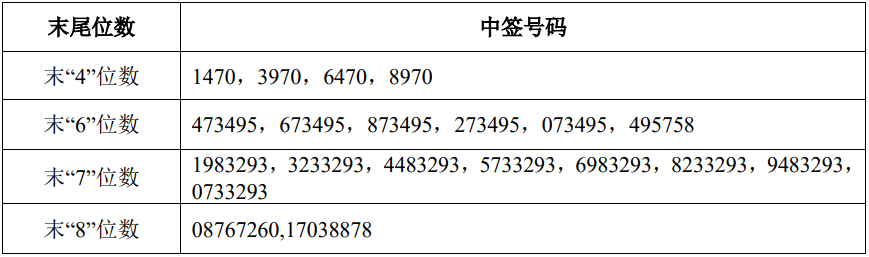 茂莱光学:科创板IPO网上发行中签号码共有1.01万个