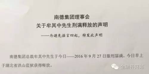 这并不是开玩笑,牟其中的南德集团在牟其中出狱当天,就专门发表了一个声明。