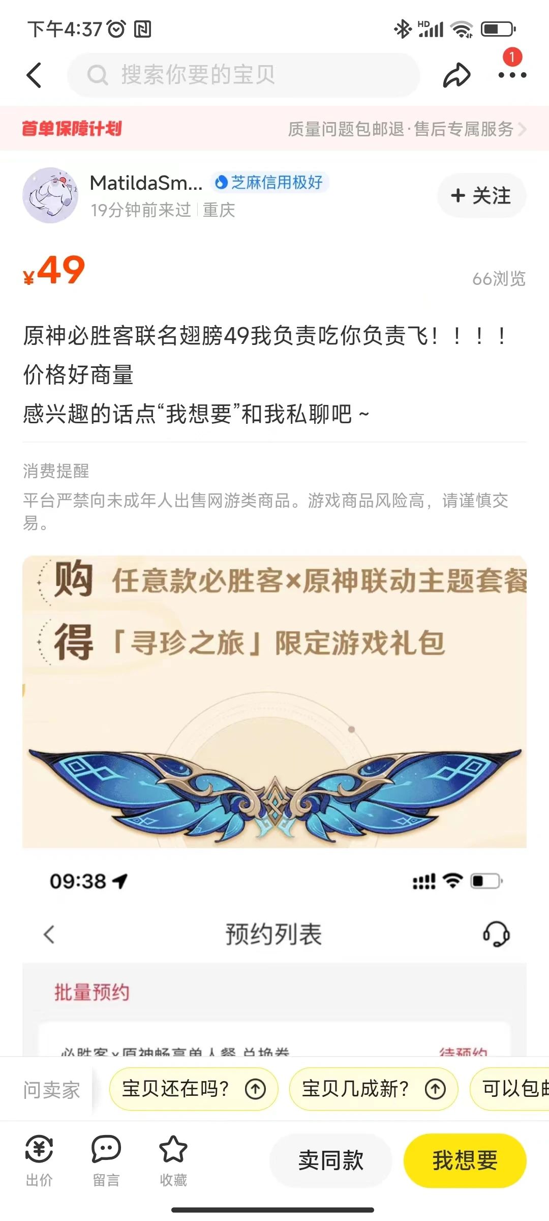 其中,“非职业黄牛”已经在某鱼上形成了围绕「星筵之翼」的“二级市场”。