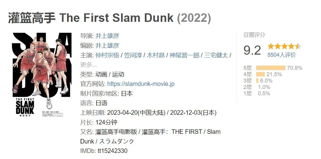 如今,《灌篮高手》电影在日本市场已经取得了过百亿的票房,而它在雅虎和Filmarks上的评分,分别为4.2分和3.4分(满分皆为5分),这些数据基本也代表了电影在日本的市场影响力和粉丝群体的整体评价。