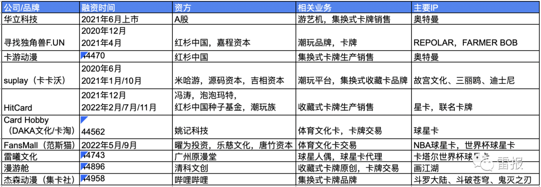 也正因为如此,卡牌品牌同样受到资本的青睐。除了今日获得关注的杰森动漫集卡社,资本市场方面,近两年来已获得融资的卡牌品牌具体有哪些呢?和雷报一起来看看。