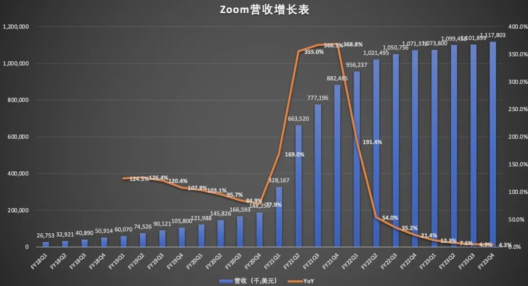 美东时间2月27日美股盘后,Zoom公布了2023财年Q4及全年业绩报告。从公布的数据看,无论是从季度营收还是年度营收增速来看,均呈现断崖式下滑。