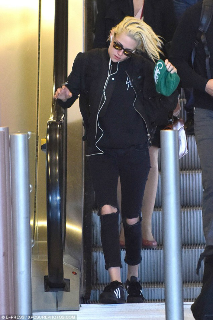 10月12日,克里斯汀出现在巴黎戴高乐机场。独自现身的她一副睡眼惺忪的模样,显然刚从飞机上的打盹小憩中醒来。当日的装扮也颇为简洁,下身为黑色破洞牛仔裤,上身为黑色T恤搭配飞行夹克,脚蹬一双黑色运动鞋,一头金色长发随意披在肩头。手中的绿色便帽与背后的黑色双肩包更添活力气息。