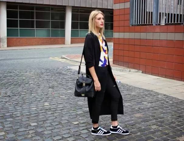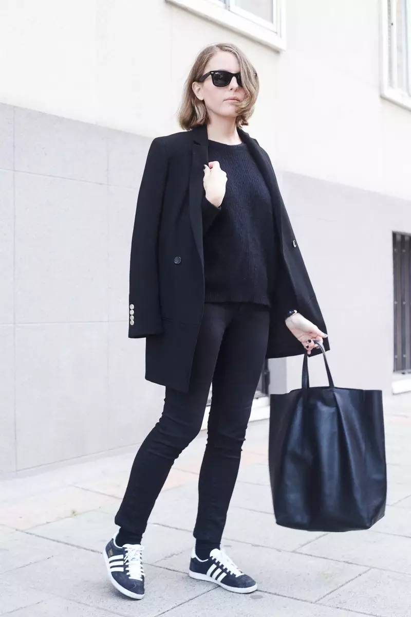 如果秋冬一定要买一双球鞋,就买Adidas Gazelle的黑色吧,黑色价格还比较好,而且真的很百搭。