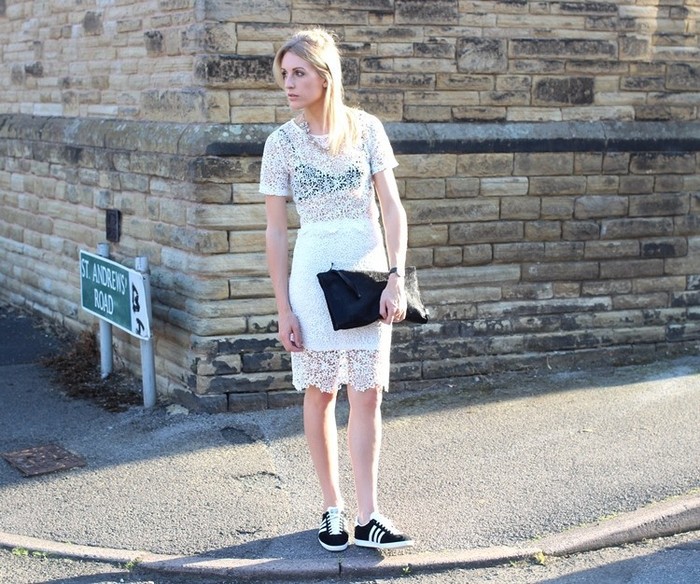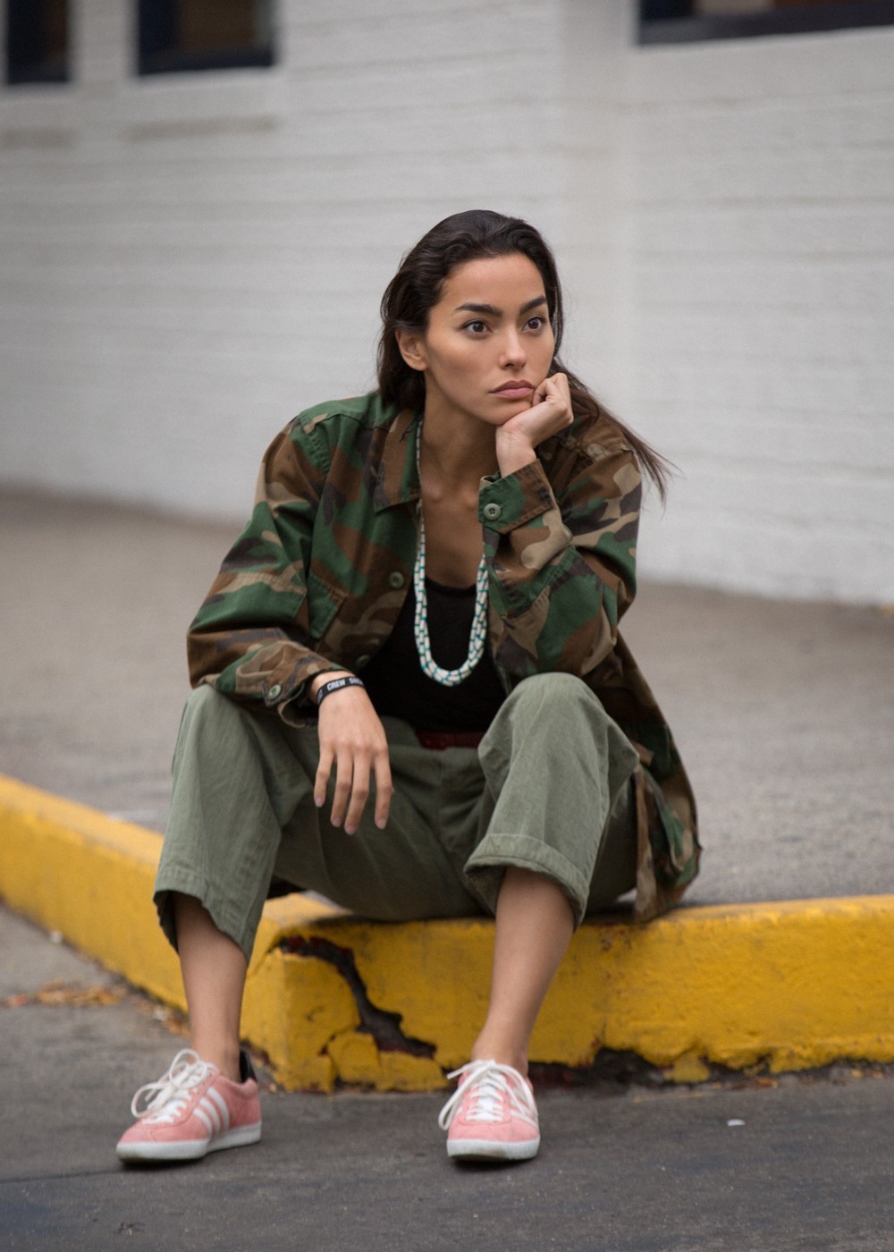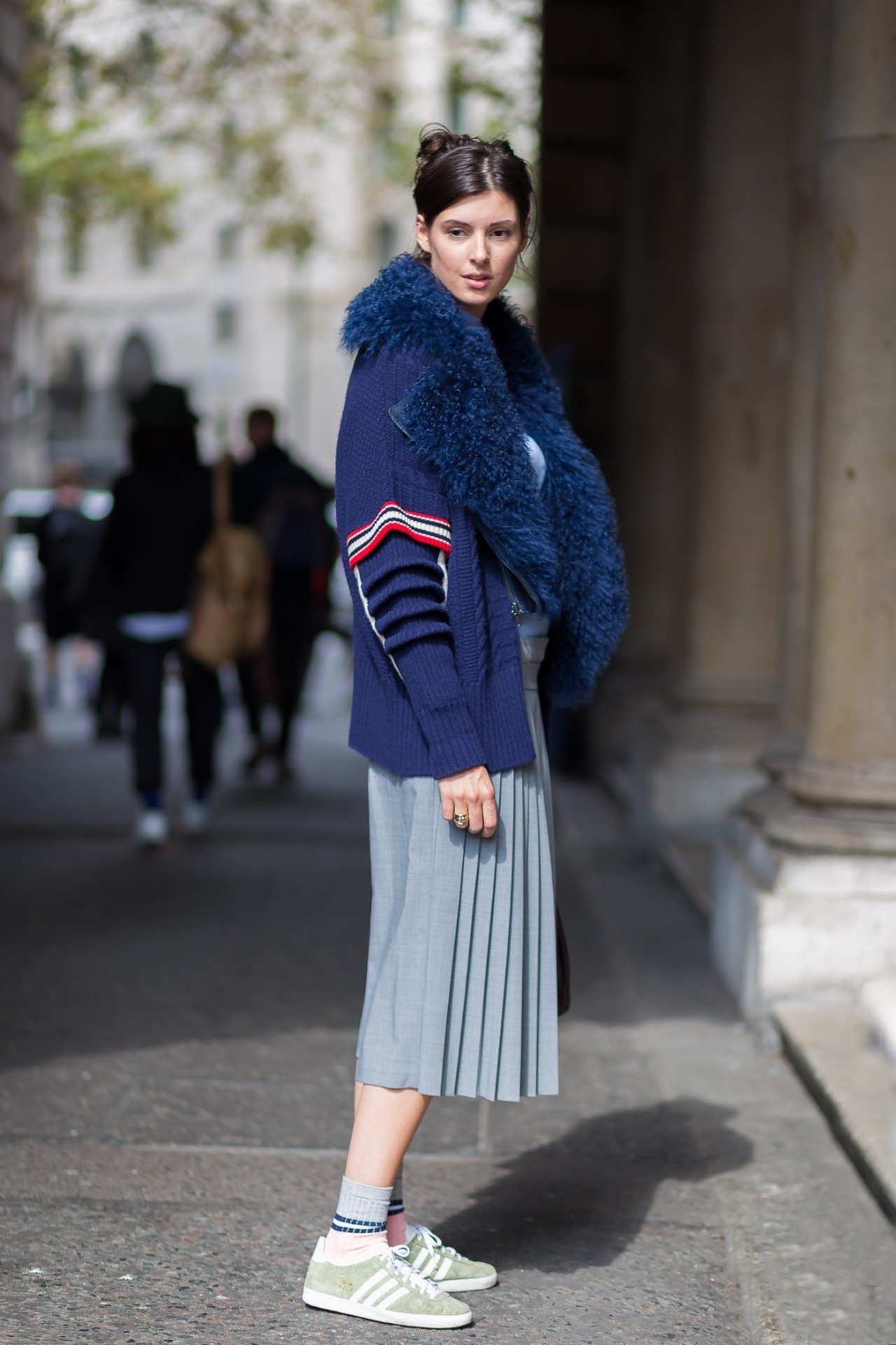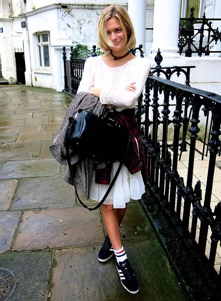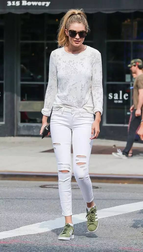 这双鞋穿得最好看的就是Gigi了,全白配上绿色的Adidas Gazelle,非常好时髦。