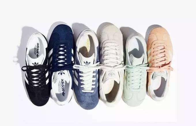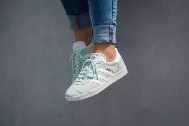1993年,Kate Moss帮Adidas Gazelle拍了很有名的杂志图,这双鞋开始走红了。